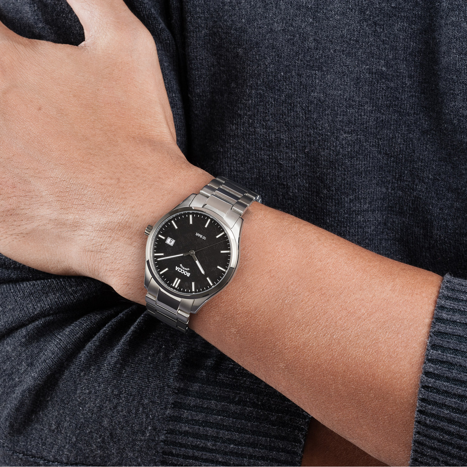 Op zoek naar een stijlvol horloge met een chique design? Dan is de 3672-02 de perfecte keuze! Het herenhorloge is gemaakt van titanium en heeft een zwarte wijzerplaat, een datum, saffierlglas en is 10ATM. De schakelband is mat/glimmend. Combineer dit prachtige exemplaar met de andere sieraden van Boccia Titanium voor een complete look.