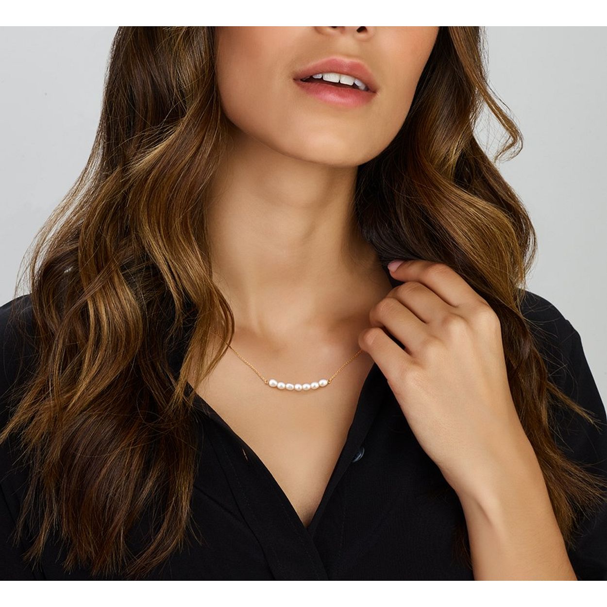 Gerhodineerd 925 zilveren collier uitgevoerd met zoetwaterparels. Het collier heeft een draaglengte van 42cm met een extensie van 3cm en een stevige karabijn sluiting.