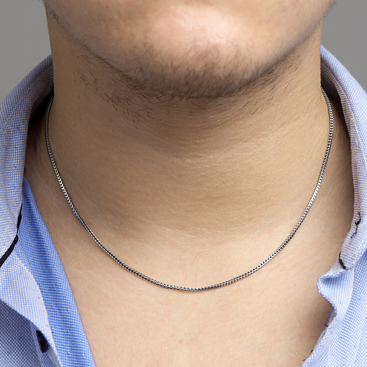 Geoxideerd zilveren collier met een vossestaart schakel en een stevige karabijn sluiting. Het collier heeft een draaglengte van 50cm.