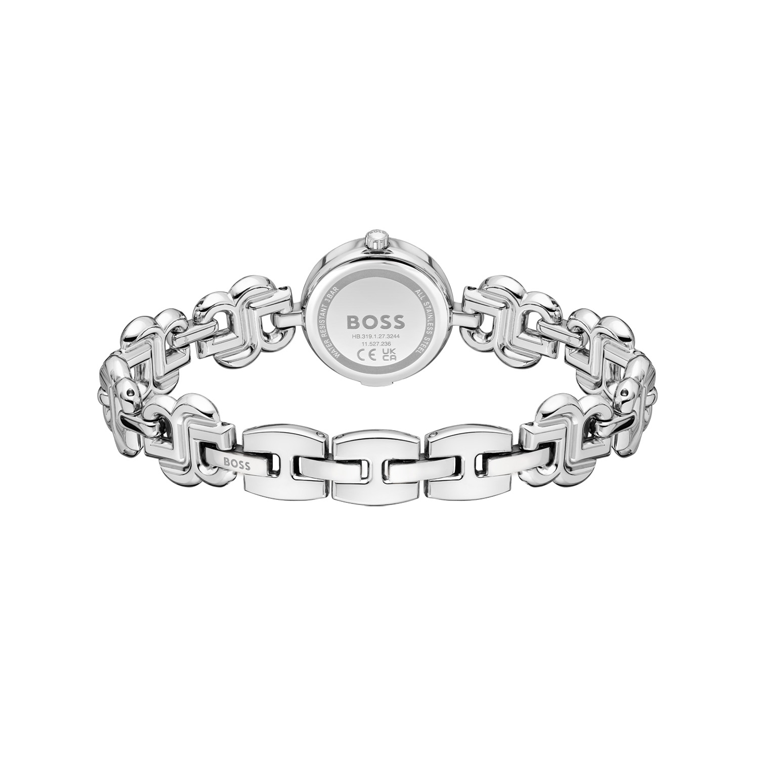 Dit BOSS horloge uit de DOUBLE B serie met artikelnr: HB1502793 heeft een chique uitstraling. Zeer geschikt voor de moderne stijlvolle vrouw van nu. Het dameshorloge valt op door zijn stalen ronde horlogekast met een gladde bezel en een zilverwitte sunray wijzerplaat met sierlijke fijne wijzers. Aan de kast zit een hele aparte stalen schakelband met allemaal B schakels om en om.