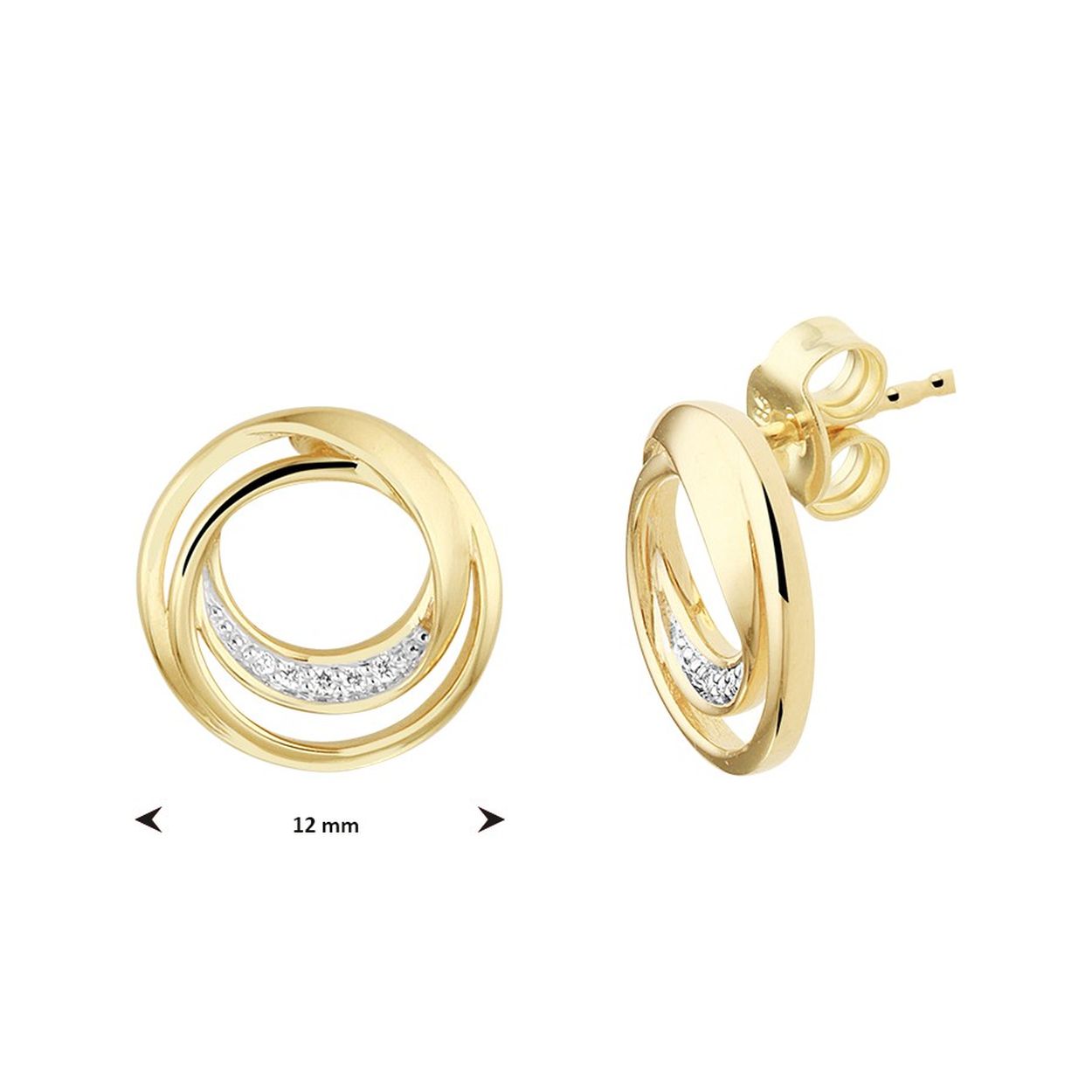14k Geelgouden oorknoppen uitgevoerd met een schitterende diamant rij. De oorknoppen hebben een diameter van 12mm.