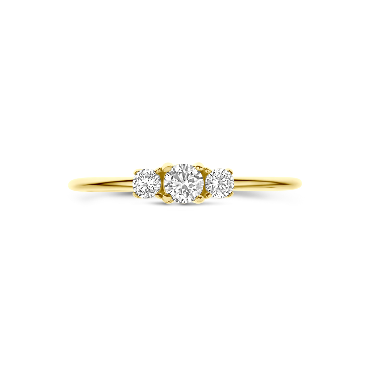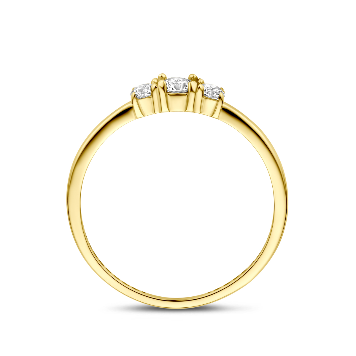 14k Geelgouden ring uitgevoerd met zirkonia. De ring heeft een breedte van 3,5mm.